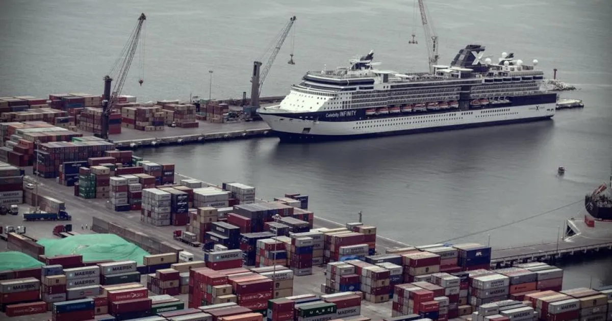 Celebrity cruise ship docked at the port of Arica, Chile