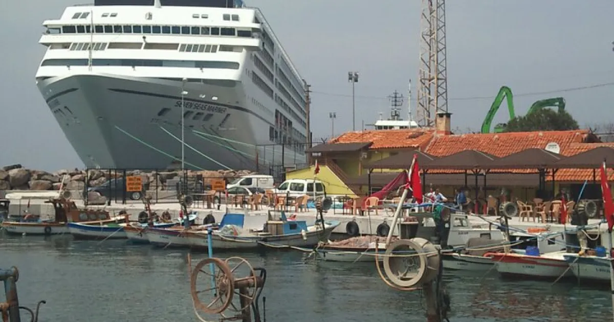 Cruise ship docked at the port of Izmir, Turkey