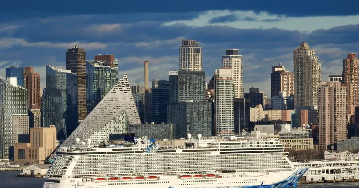 NCL Cruise ship docked at the port of Manhattan New York City