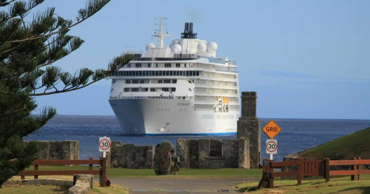 cruise ship docked at the port of Norfolk Island, Australia